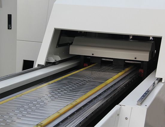A máquina consiste em uma mesa de alimentação, base de matriz, sistema de transporte, unidade de controle servo e sistema auxiliar de design, garantindo desempenho estável e confiável.